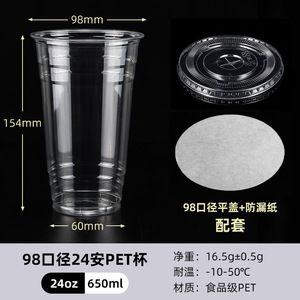 98-24オンス (700ml) カップ + 平らな蓋 + 漏れ防止紙