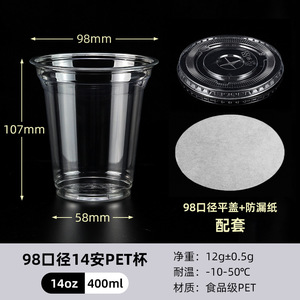98-14オンス (400ml) カップ + 平らな蓋 + 漏れ防止紙 + ステッカー + ストロー