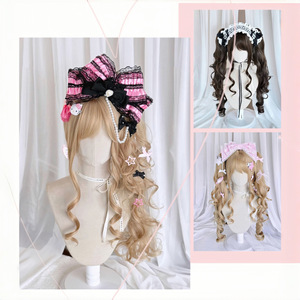 【乙女夢日記】ウィッグ 女性 ロング巻き毛 ダブルポニーテール 虎口クリップ ロリータ ゼノン 古代人形 全頭