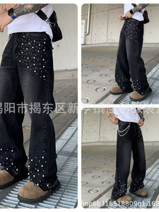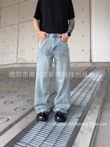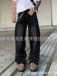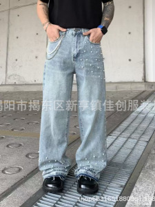 パーソナライズされたトレンディなアメリカンレトロウォッシュ加工ダメージジーンズファッショントレンドルーズカジュアルストレートデザインパンツ