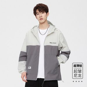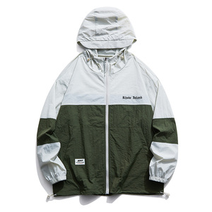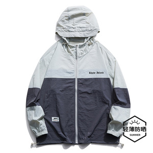 日本のトレンディなブランドステッチコントラストカラー日焼け止め服メンズ夏アイスシルク薄いクールジャケットカジュアルカップルジャケット