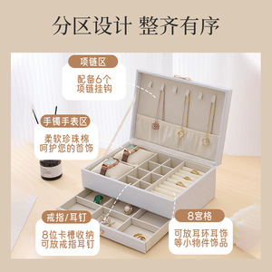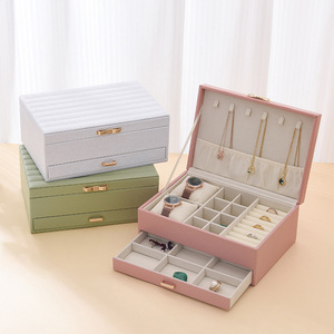 大容量リングネックレスジュエリーボックスイヤリングイヤリングブレスレットジュエリー収納ボックスpuレザー単層ジュエリーボックスストライプ