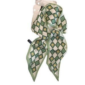 夏らしい緑の雰囲気の小さなシルクスカーフ、多用途でエレガントなシャツのスカーフ、細くて長いヘアタイとバッグリボンで装飾