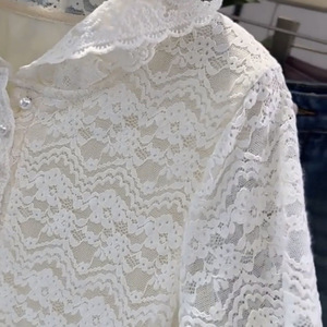 女性用の高級スプライスレースフード付きレースシャツ、春と秋のかぎ針編み中空レイヤードボトムインナートップ