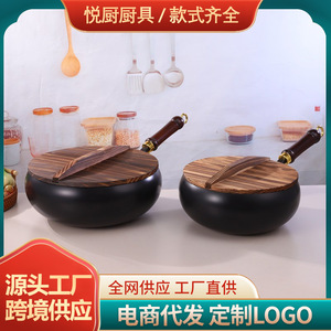 新型の張丘伝統家庭用大釜鍋、手作りの無塗装ノンスティック調理鍋、煮込み料理用小型鉄鍋