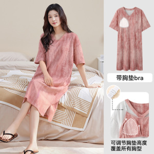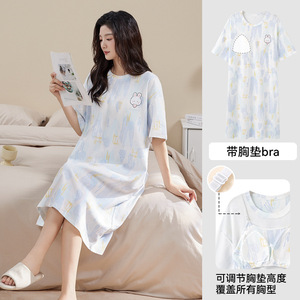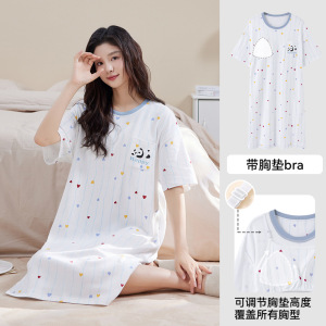 女性のための純粋な綿のパジャマ夏 2025 新しい夏甘くてかわいいスタイルは、胸パッド付き半袖ネグリジェホーム服の外で着用できます