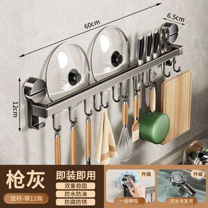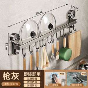 ガンアッシュ吸盤キッチンフックパンチフリー収納ラック吊りロッド鍋蓋スプーンシャベルハンガーナイフホルダー収納ラック