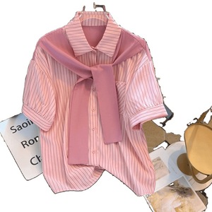 披肩条纹衬衫短袖夏装新款韩版职场轻熟法式高级感衬衣轻奢上衣女