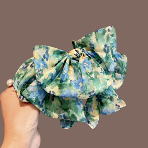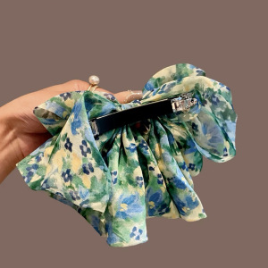 新しいスタイルの小さな新緑の花のリボンスプリングクリップ、エレガントで多用途な後頭部のヘアピン、妖精のようなヘアアクセサリー