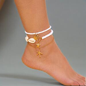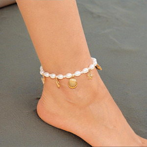 25 年の新しいボヘミアンスタイルの足の装飾ゴールデンヒトデシェル法螺貝パールファッション夏の女性のアンクレット