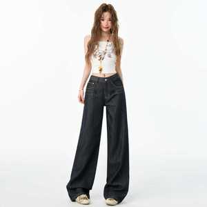 代发批发莱赛尔丹宁蓝宽松阔腿裤垂感百搭春秋牛仔裤长裤加长