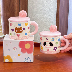猫マグカップ蓋付きセラミックカップかわいい女性誕生日プレゼント子犬ベアー高颜値オフィスカップ