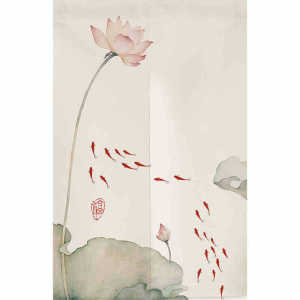 新しい中国風のシンプルなホームベッドルームファブリックバスルームカーテン蓮玄関ドアカーテンパーティションカーテン卸売