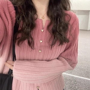 ピンクのグラデーションの高級ニットセーター女性用2025年初春の新しい韓国シックなデザイントップ
