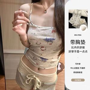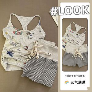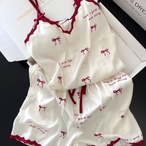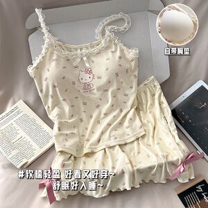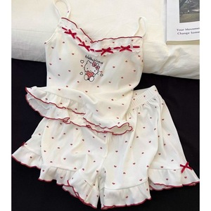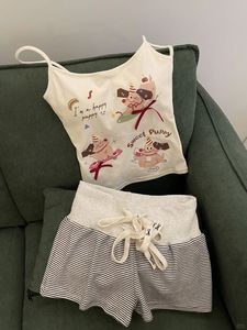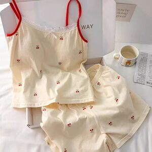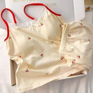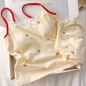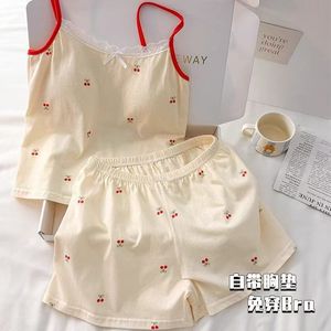 純粋な欲望スタイルサスペンダーパジャマ女性の夏 2025 新しいかわいい甘いチェリープリントショーツホーム服夏