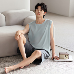 スポットモーダルパジャマメンズ夏新作メンズアイスシルク夏半袖ショーツ薄手ホームウェアセット