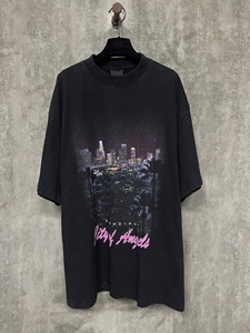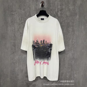 ハイバージョンB 25ss ロサンゼルス夜景 直噴プリント ウォッシュド半袖 OS ゆったり万能 欧米男女兼用 Tシャツ
