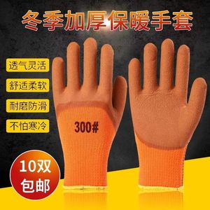 加绒加厚毛圈发泡劳保手套保暖耐磨防滑超厚浸胶工地建筑防护批发
