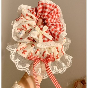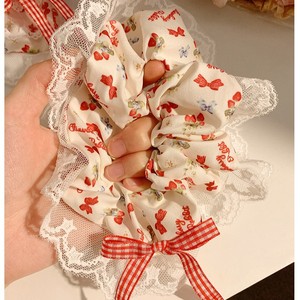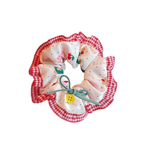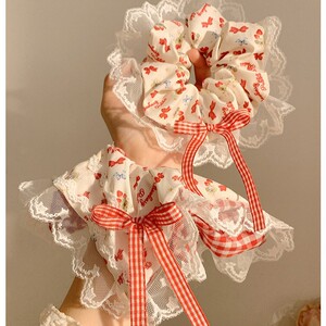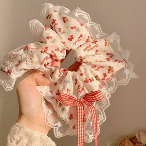 ストロベリーボボ~レッドレースリボンスクエアスカーフ、女性用ヘアゴム、高級韓国風ヘアロープ、カチューシャ