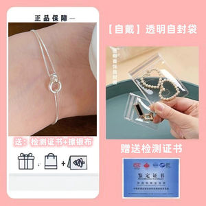絶妙なリボンギフトボックス + 証明書 + シルバー磨き布 + グリーティングカード - S925 スターリングシルバー プレーン インターロッキング ブレスレット