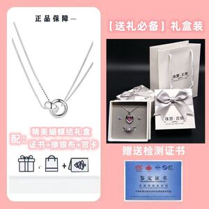 絶妙なリボンギフトボックス + 証明書 + シルバー磨き布 + グリーティングカード - S925 スターリングシルバー プレーンインターロッキングネックレス