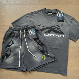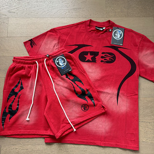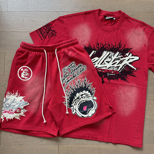 外国貿易クロスボーダー卸売アメリカンファッションヘルズスターレトロプリント夏の男性と女性のルーズ半袖カジュアルショーツスーツ