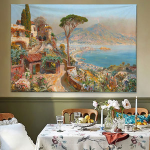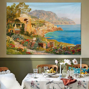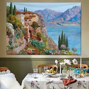 海辺の町のレストランの装飾壁掛け布ヨーロッパアート背景壁掛け布寝室壁画布リビングルーム風景油絵