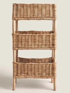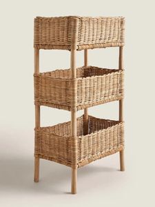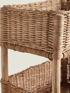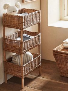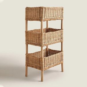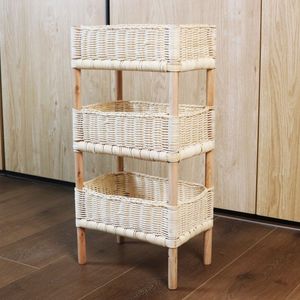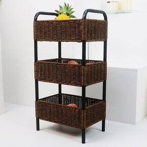 天然籐収納ラック床置き三層洗える多層無垢材収納ラック整理収納バスケット牧歌的なスタイル