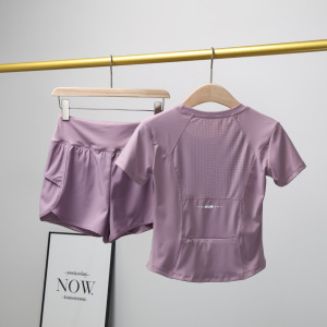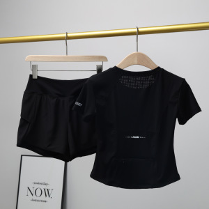 バックポケット付き女性用ヌードフィットネスウェア、アウトドアプロランニングスウェットウェア、通気性と速乾性のある夏スタイル