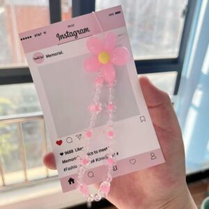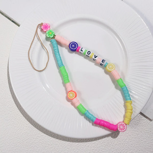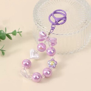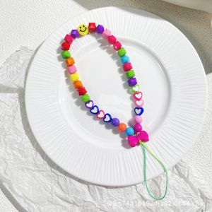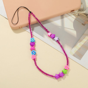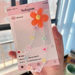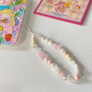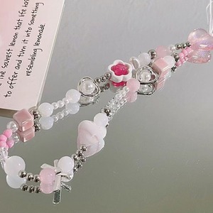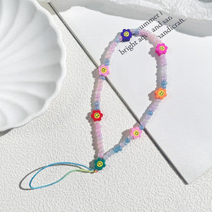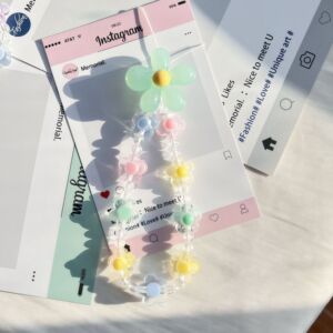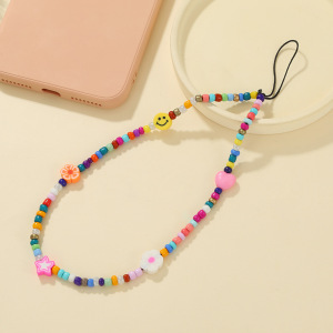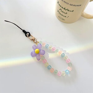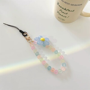 携帯電話チェーン 004-ライスフラワーカラフルビーズ