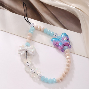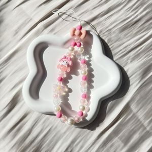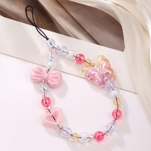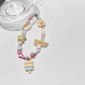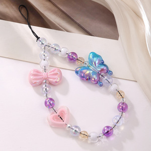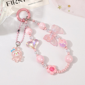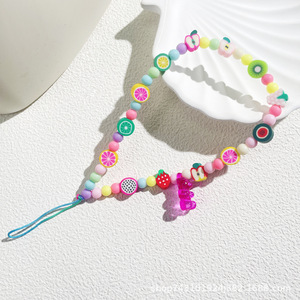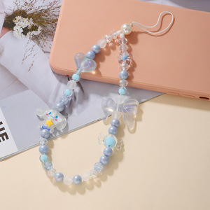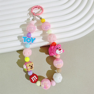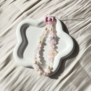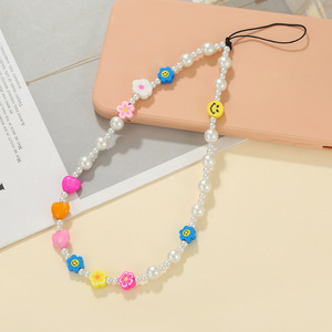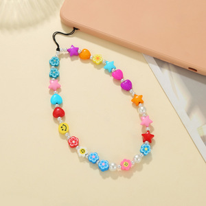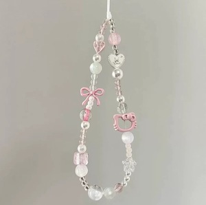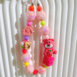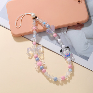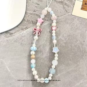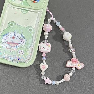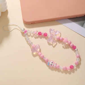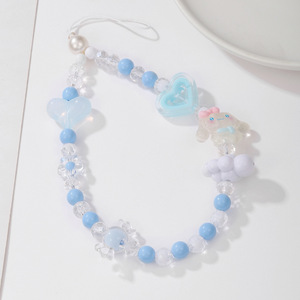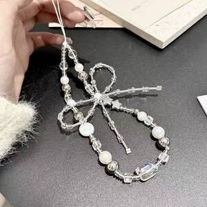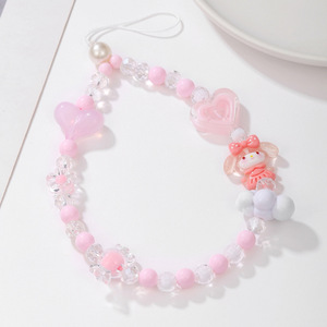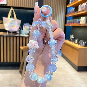 携帯電話ケースストラップ美少女レインボーストラップインシルバーホワイトパールクマ手首インターネット有名人ペンダントブレスレットユニバーサル