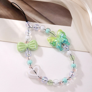 携帯電話チェーン 004-グリーンフラワーカラフルビーズ