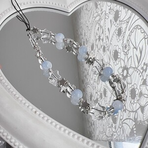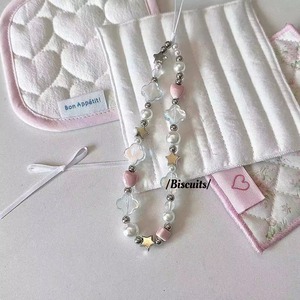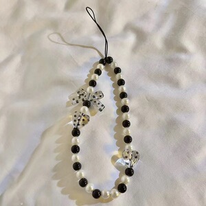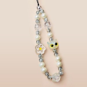 携帯電話チェーン 065-フロストビーズ ホワイト