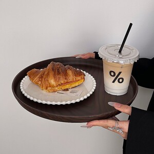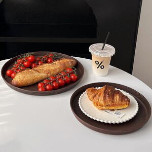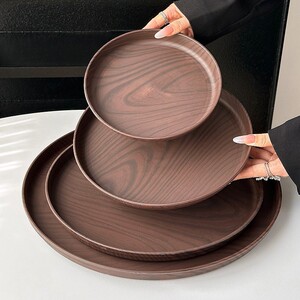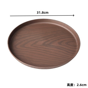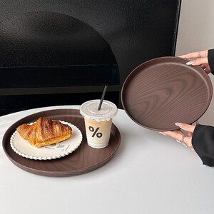 仿木纹圆形托盘ins餐盘茶盘胡桃木收纳盘咖啡厅蛋糕甜品盘水果盘