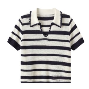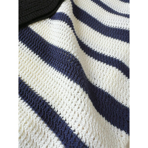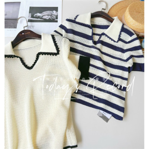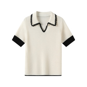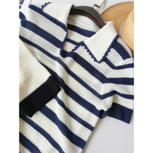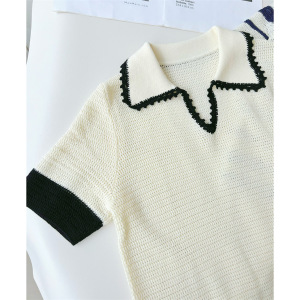 ミスミウの高級リネン混セルハンドメイドかぎ針編み襟ポロ半袖セーター
