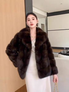 模造ミンク毛皮コートレディースファッションライト高級ミンクコート2025秋冬新作毛皮一体型ショートスタイル中古