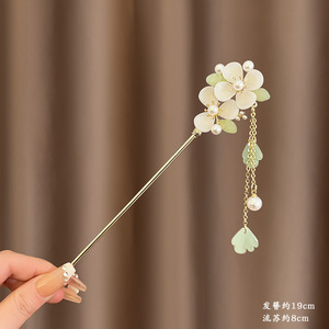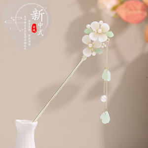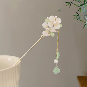 マグノリアの花のヘアピン、古代スタイルのヘアピン、漢服の頭飾り、女性のチャイナドレスのヘアアクセサリー、タッセルパールメタルヘアピン、翡翠のヘアピン