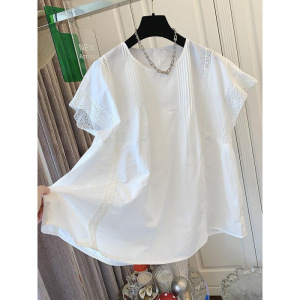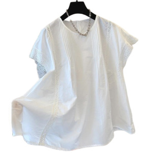 ファッショナブルでユニークで超見栄えの良いフレンチスタイルのレースプリーツホワイト半袖シャツベビードールルーズトップ女性夏