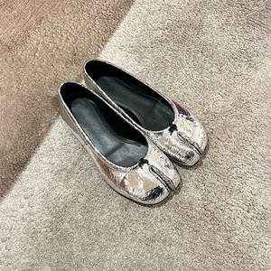 シープスキンバージョン〜女性用ソフトソールピッグトゥシューズ、本革浅口フラットソールレディースシングルシューズ、シルバーメリージェーンスモールレザーシューズ