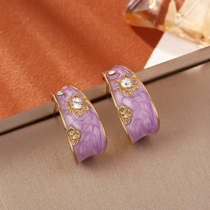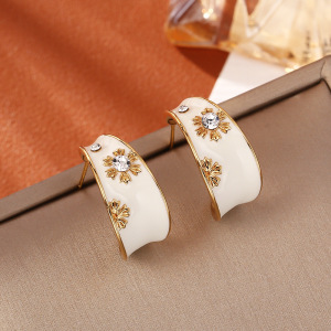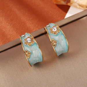 新しい中国風エナメルオイルドリップC型イヤリング、レトロスタイルドーパミンファッション、ハイエンド、エレガントな気質、INSスタイルイヤリング