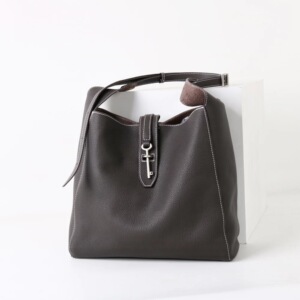2025 新しいキーホーボーリラックスソフトトップレイヤー牛革オールドマネースタイルリラックス大容量クロスボディバケットバッグ