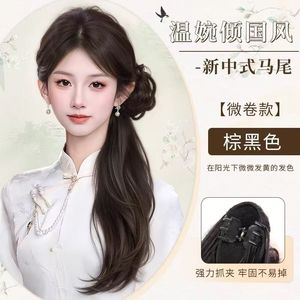 女性用ウィッグ、新しい中国風ポニーテール、小さなクリップ、水の波紋ポニーテール、少しカーリーなポニーテール、古代スタイルの漢服チャイナドレスサイドポニーテール