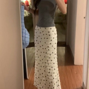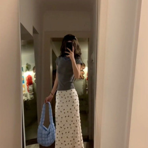韓国白夏休みリボンプリントレースハイウエスト花柄フィッシュテールスカートロングスカート痩身スカート