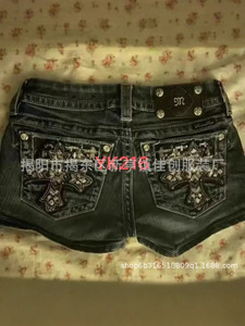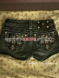 クロスボーダーメーカー直販アメリカンレトロな個性パターンデザインデニムショートパンツ日本のハイストリートスリムカジュアルパンツ