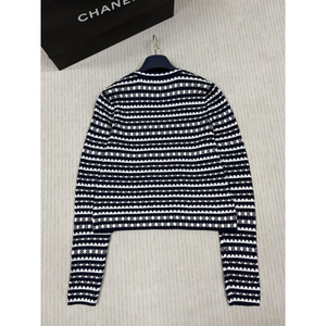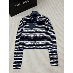 ヨーロッパステーション 2025 春の新作レディースラウンドネックかぎ針編み中空ストライプファインウール長袖カーディガンヨーロッパニット