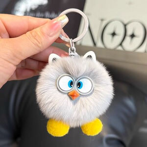 イミテーションレッキスファーのかわいい小さな石炭球バッグチャーム、ブックバッグ用の絶妙な人形飾り、漫画風おもちゃ、車のキーホルダー