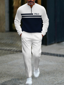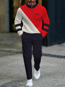 国境を越えた欧米のアマゾンの新しい半開きのドアの襟のファスナーの頭のカジュアルなファッションの男性の長袖のズボンのスーツ