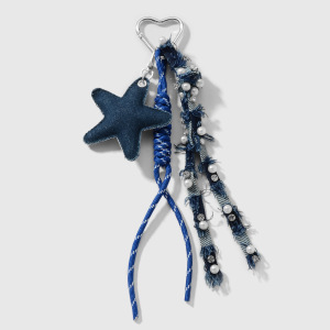 新型insファッション精緻高颜値模造真珠水ドリルデニム星愛DIYキーホルダーペンダント