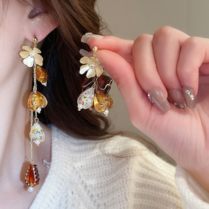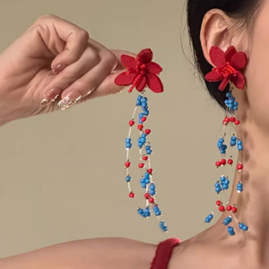 夏の超妖精な雰囲気〜ドーパミンフラワータッセルピアス、ニッチなリゾート風ピアス、甘くて爽やかなピアス