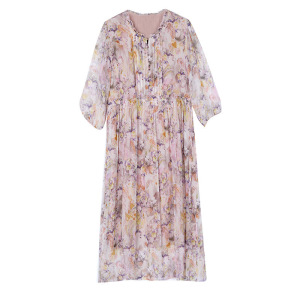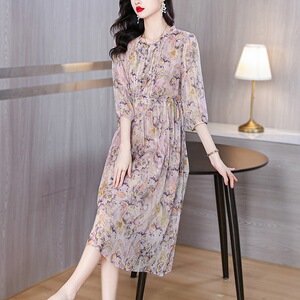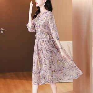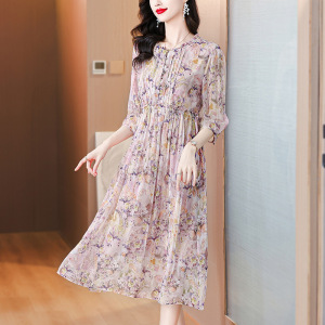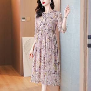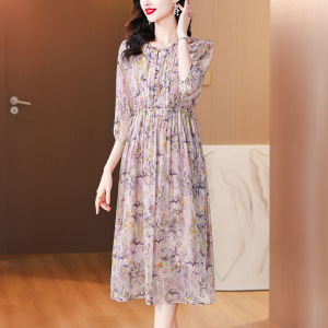 シルクシフォンドレス女性のための 2025 夏の新しいファッションエレガントな気質ハイエンドマルベリーシルク花柄スカート